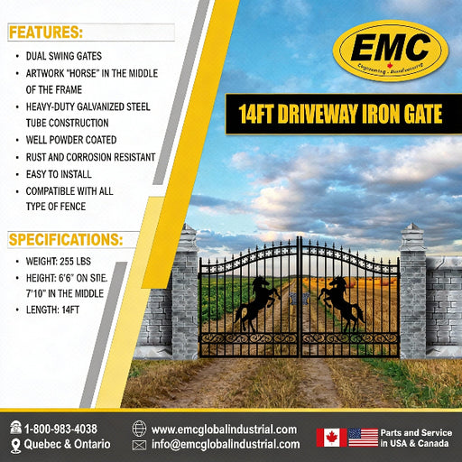 View full detailsEMC 14 ft. Wrought Iron Driveway Gate - Horse Design, Heavy-Duty