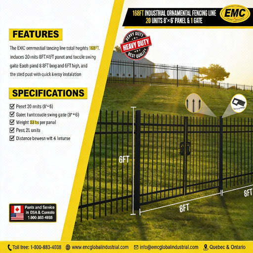 View full detailsEMC 168FT 8’×6′ Sharp Top Industrial Ornamental Fencing Line - 20 Panels & 2 Gate