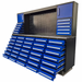 This 10FT-40D-2 is a combo of workbench and cabinet, a Total of 30 drawers on the workbench, and 10 drawers on the cabinet. Two swinging doors on the top Cabinet. There is a great pegboard about 68” wide for tool hanging and other ideal purposes. All the workbench drawers have full extension ball bearing sliders and each drawer’s holding capacity is more than 100lbs. Each 5 workbench drawers come with one lock.
